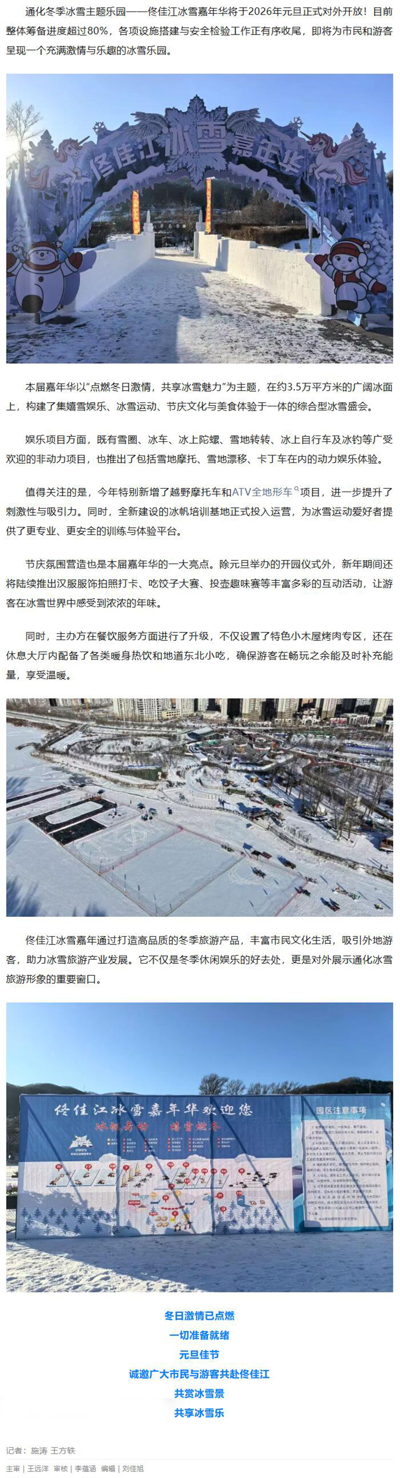 元旦开启!佟佳江冰雪嘉年华准备就绪