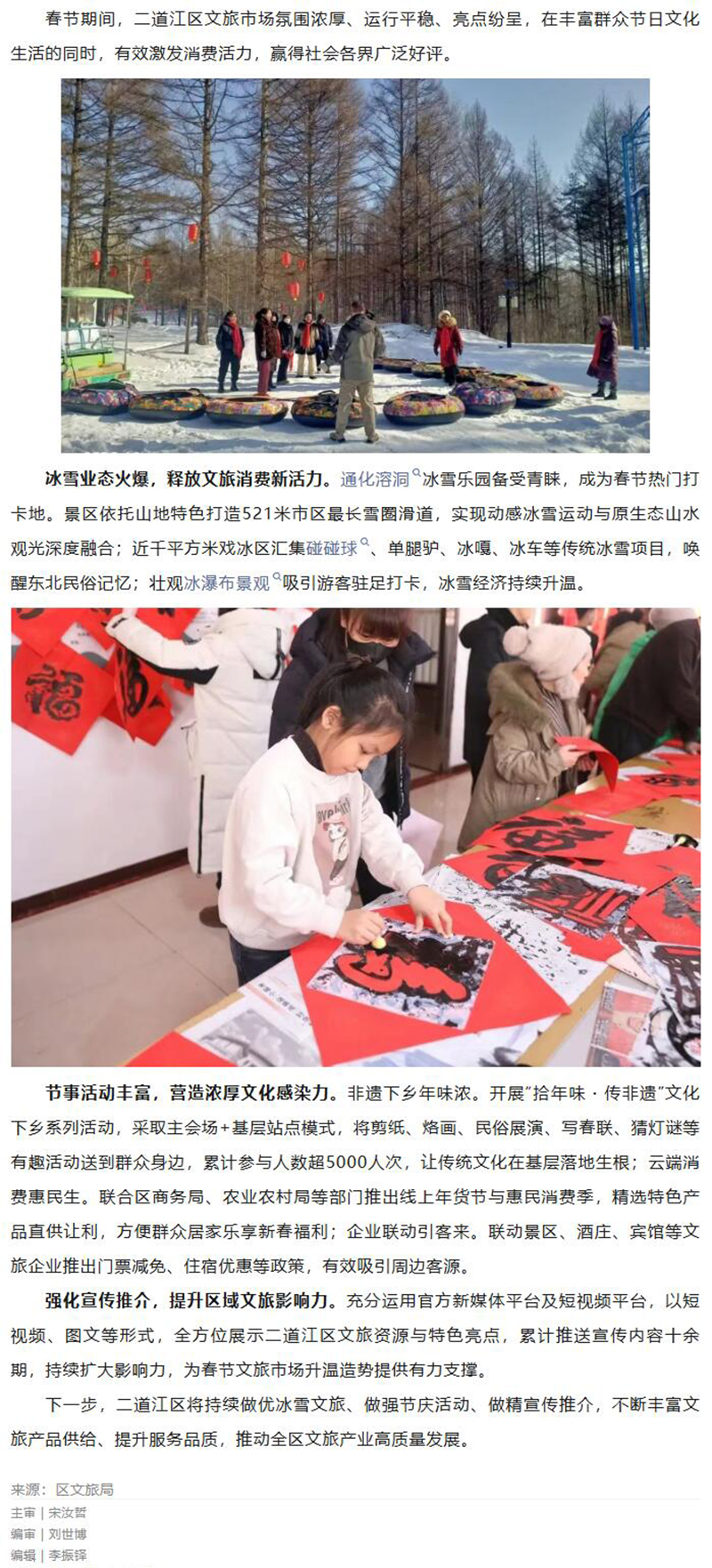 二道江区:春节文旅市场“热”力足 年味浓